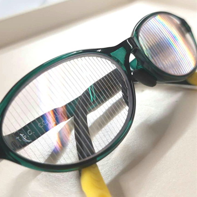 フレネル膜プリズムは、薄くて軽く、強度プリズムにも対応できます。メガネレンズに貼り付けて使えます。